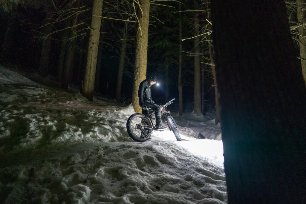 As for the ideal time to go: When it’s cold and old. Firm, hard-packed snow makes for the best traction, and it’s less likely to have potholes left by walkers and runners. When temperatures are above freezing, the wheels have a tendency to slide. Slush is not your friend on a fat bike.