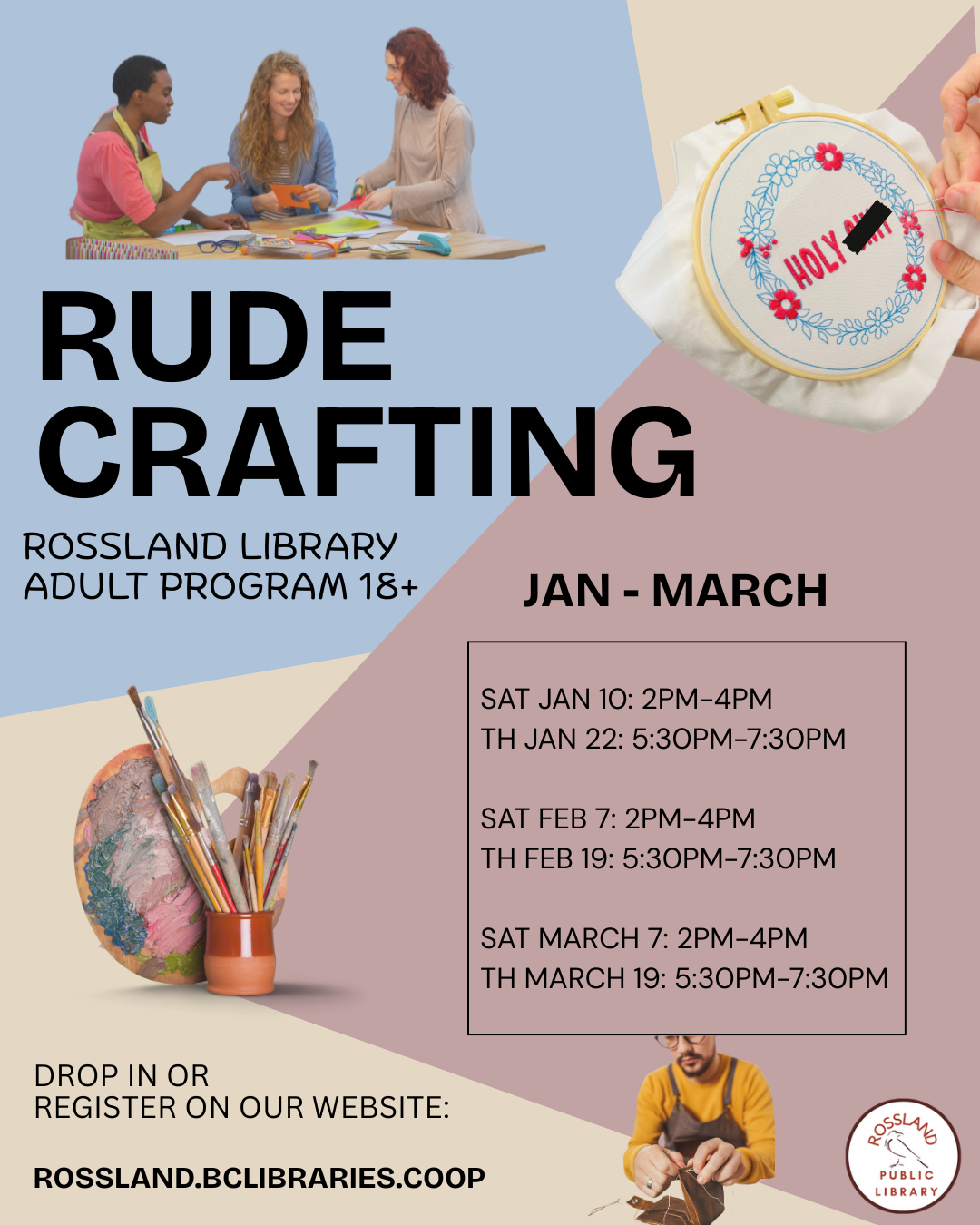 Rossland Public Library 2180 Columbia Avenue, Rossland, BC, CanadaMending with Helen James Saturday, January 17th at 1:00pm At the Rossland Public Library Learn practical sewing skills that will help you extend the life of your favourite clothes! Join local instructor Helen James for a hands-on workshop focused on mending denim and replacing zippers using your own sewing machine. This session is ideal for […]