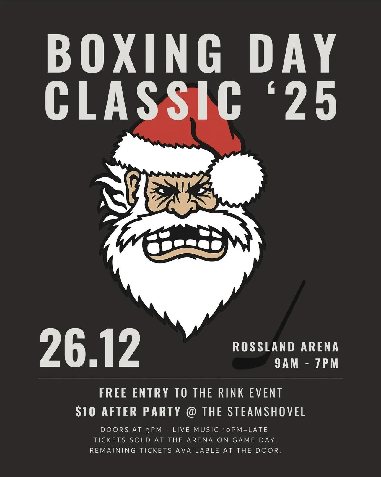 Don't miss the hottest party off the ice. The Flying Steamshovel is hosting the official after party for the Boxing Day Classic. Live Music starting at 10pm.