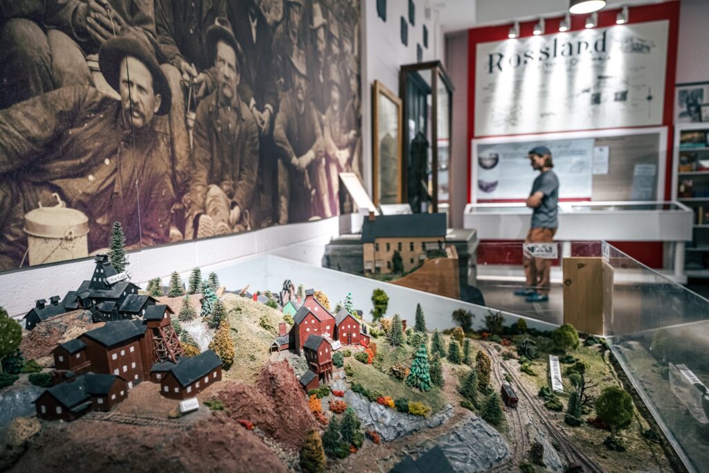 The Rossland Museum & Discovery Centre is located at 1100 Hwy 3B, the Junction of Hwys 3B & 22. Generally the first stop you’ll hit if you’re coming through Strawberry Pass from Highway 3, or up from the Paterson border. We like to think of ourselves as the visitor gateway to the Kootenays and the Columbia Basin! There’s free parking, including RV parking, so pull up and come on in!